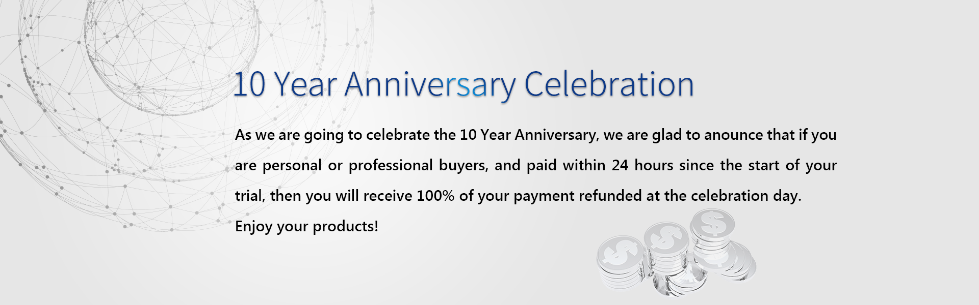 Special Offer: users who made payments within 24 hours since the start of trial, will receive 100% of their payments refunded, at 2017.12.20, e.g. the 10 Year Anniversary of Hideasoft.